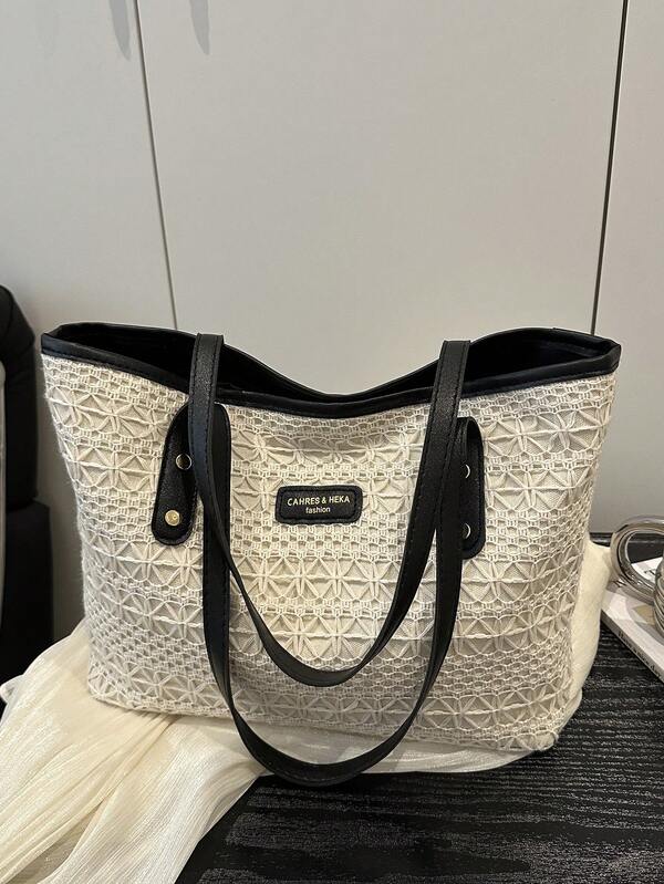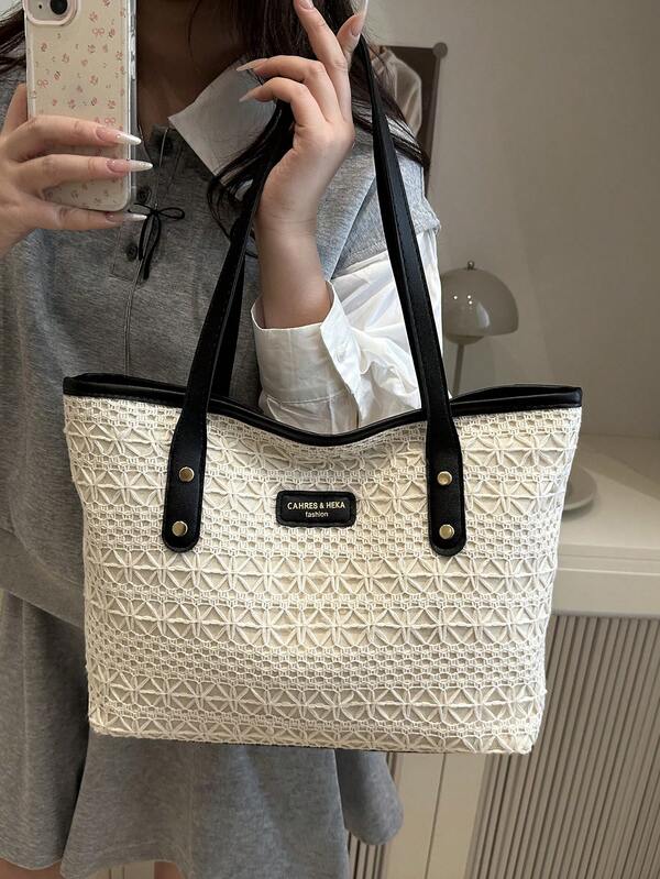 حقيبة كبيرة مُنسوجة على الطراز الأوروبي الأمريكي الجامعي للنساء