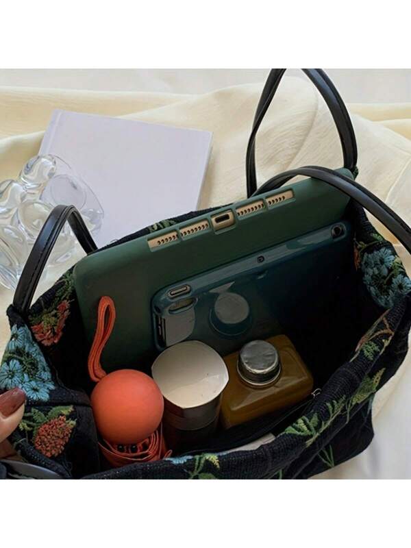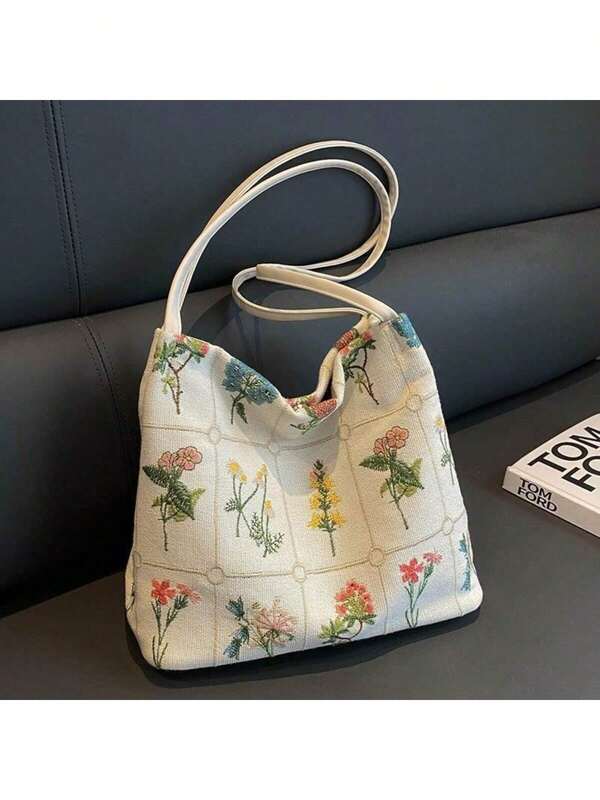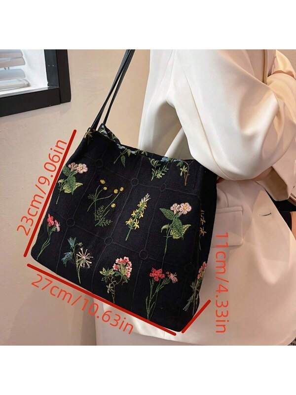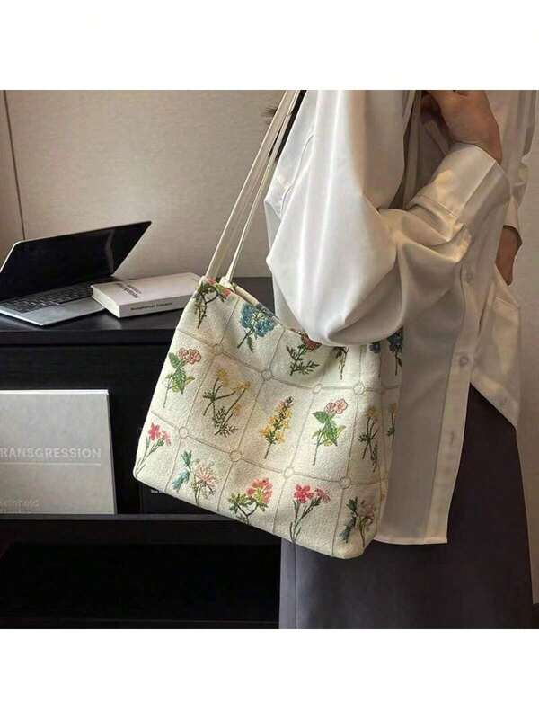 حقيبة كبيرة سعة كبيرة من القماش للنساء بتطريز وطباعة، موضة ربيع