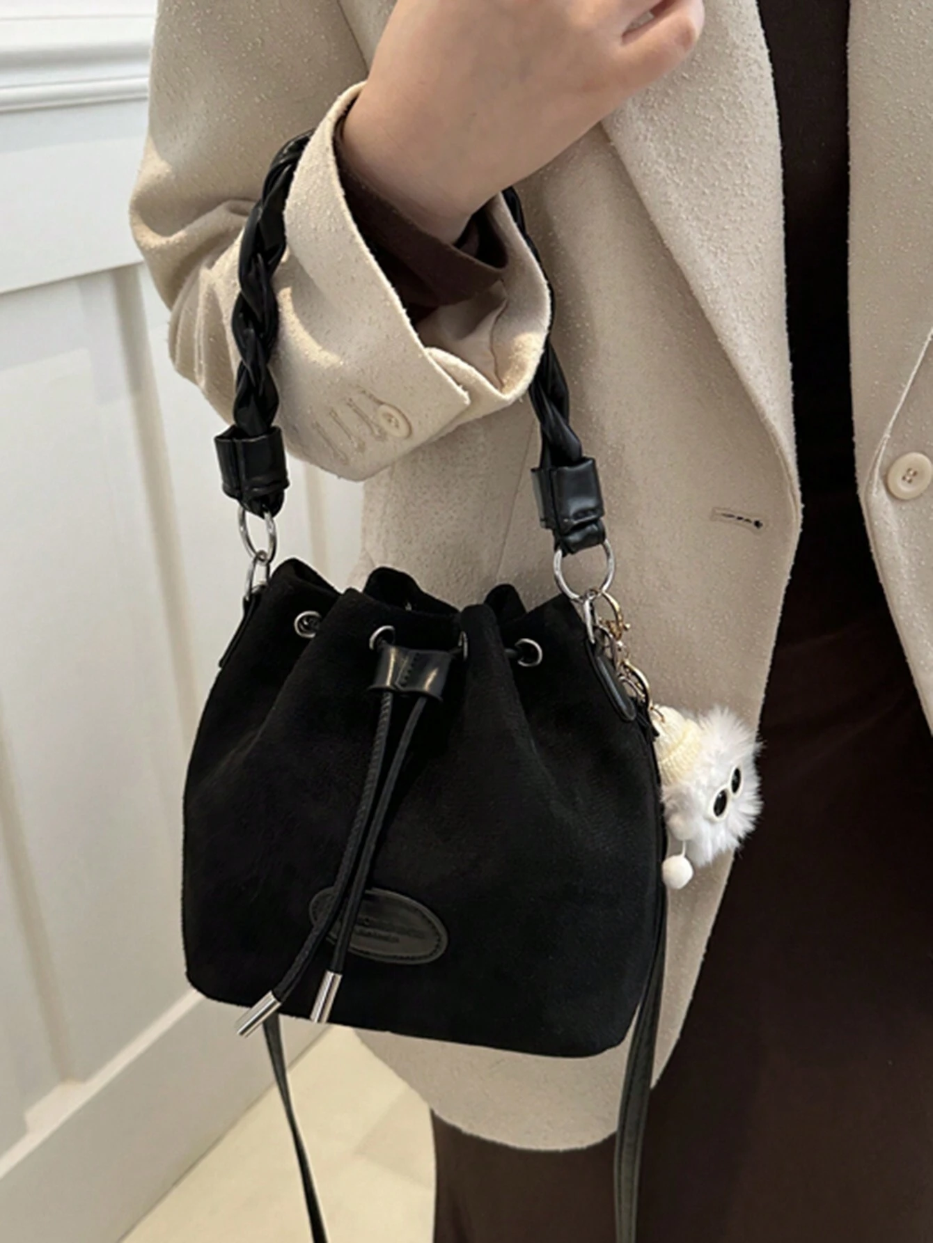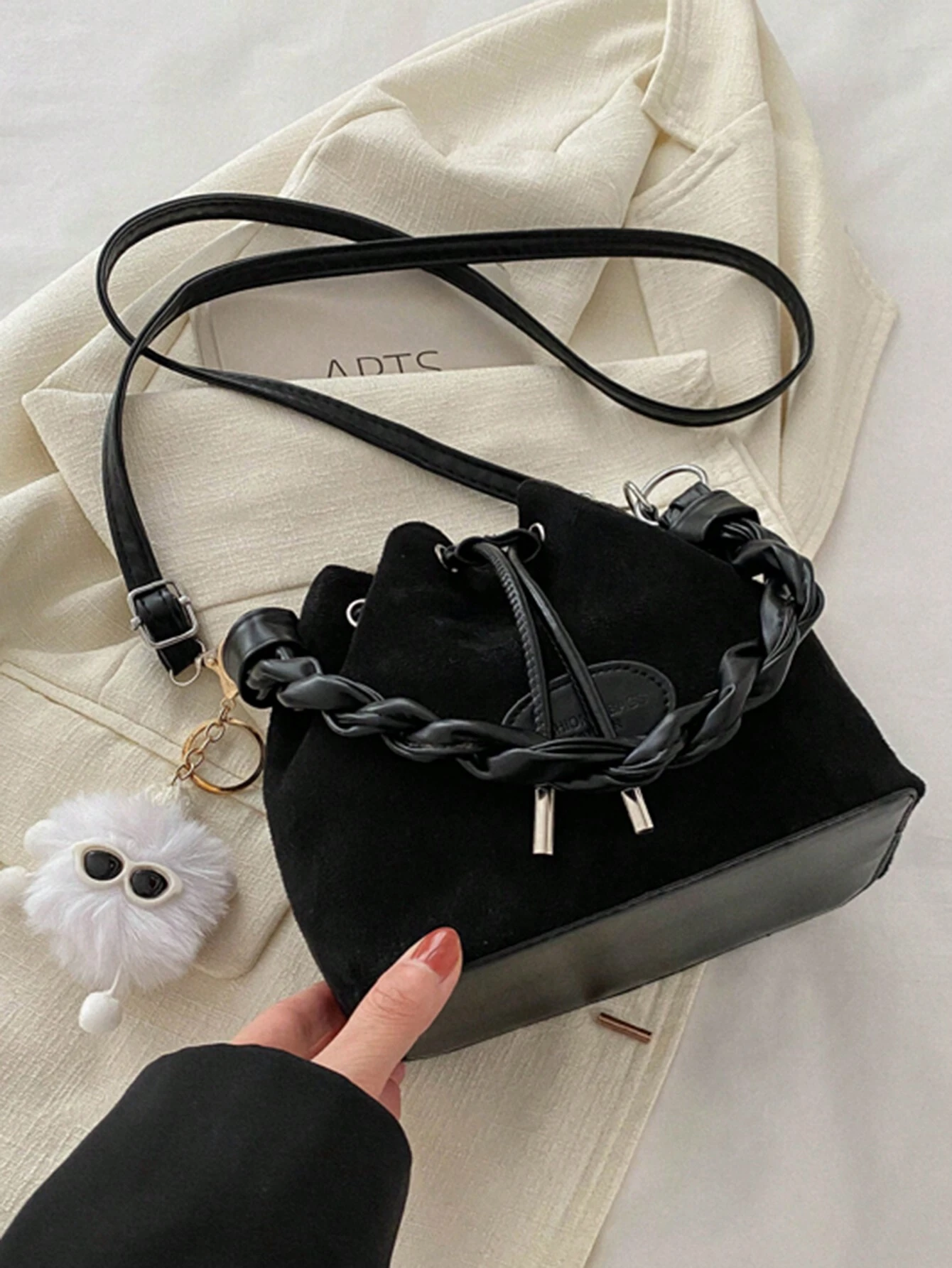 حقيبة كروس بودي صغيرة مع رباط للنساء، حقيبة دلو بشكل ماسي للاستخدام اليومي والخارجي