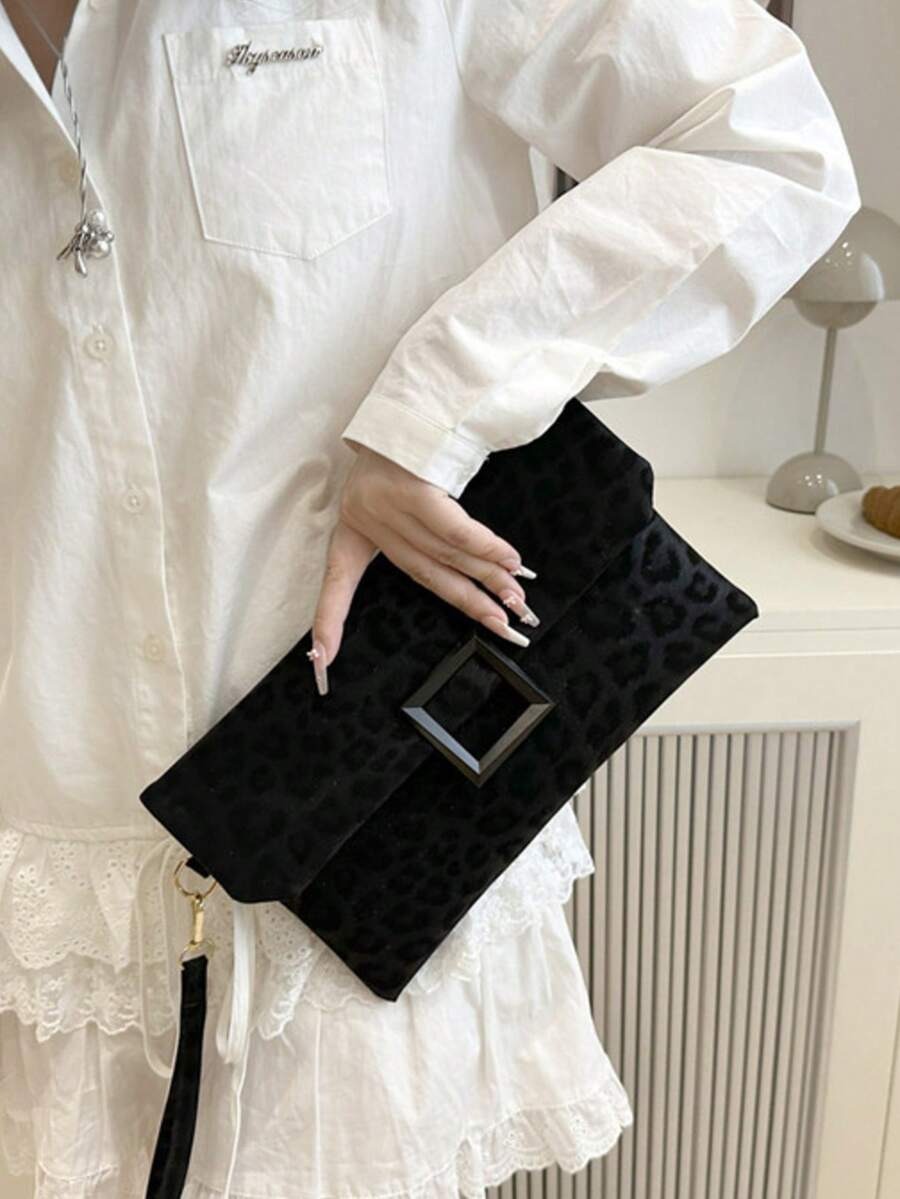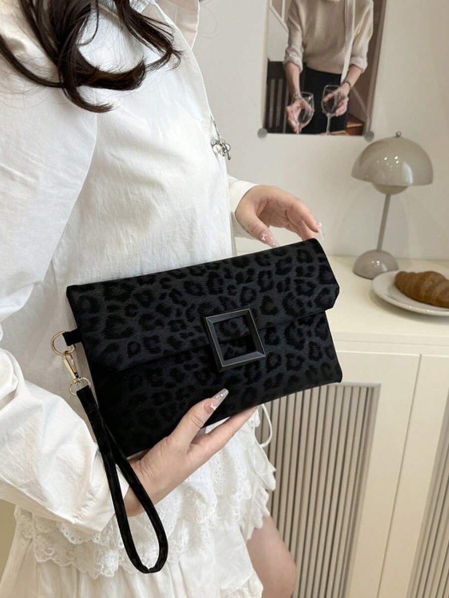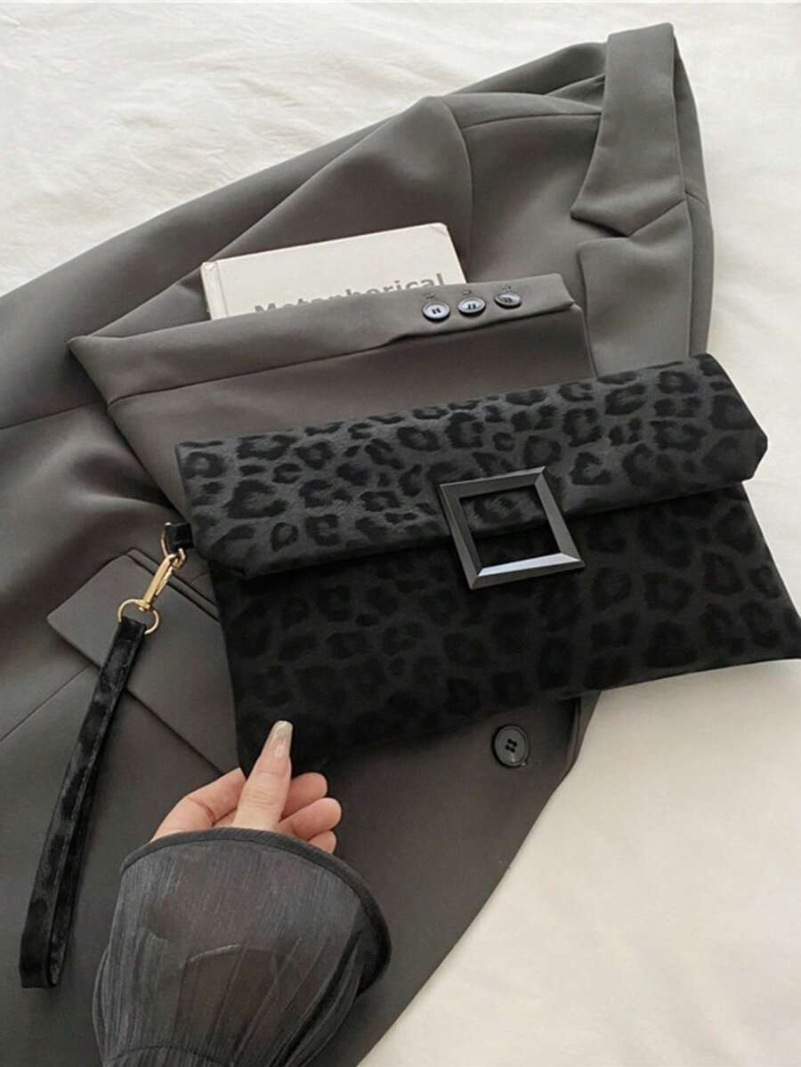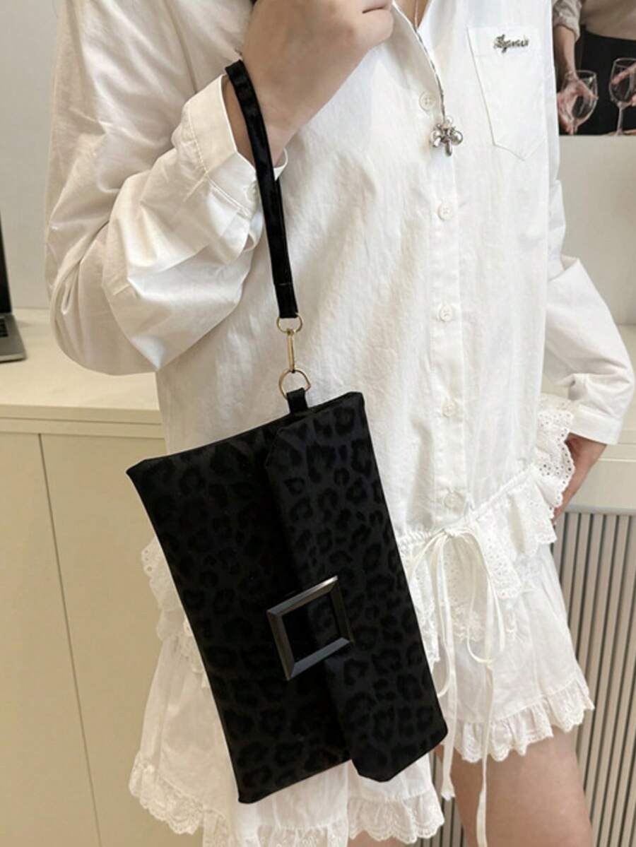 حقيبة كلاتش للنساء، حقيبة مربعة صغيرة ذات طبعة نمر عصرية، حقيبة يد بغطاء